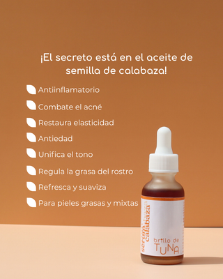 Con aceite de semillas de calabaza (cucurbita pepo oil) protege tu piel esta temporada del clima extremo y controla el acné mientras humectas delicadamente.